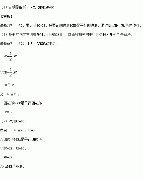 (2)连接AD、BE,若要使四边形DBEA是矩形,则给△ABC添加什么条件,为什么?