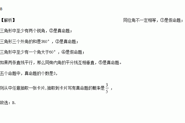 从中任意抽取一张卡片,抽取到卡片写有真命题的概率是( )