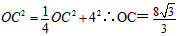 如图,⊙O的直径AB垂直弦CD于M,且M是半径OB的中点,CD=8cm,求直径AB的长。