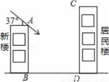 如图,某居民小区有一栋居民楼,在该楼的前面32米处要再盖一栋30米的新楼,现需了解新楼对采光的影响,当冬季正午的阳光与水平线的夹角为37°时,求新楼的影子在居民楼上有多高?(参考数值:sin37°≈0.6,cos37°≈0.8,tan37°≈0.75)
