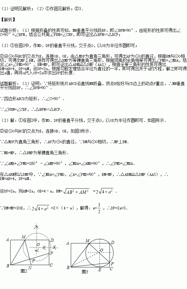 (2)①在图2中,作出经过M,D,P三点的⊙O(要求保留作图痕迹,不写做法);
