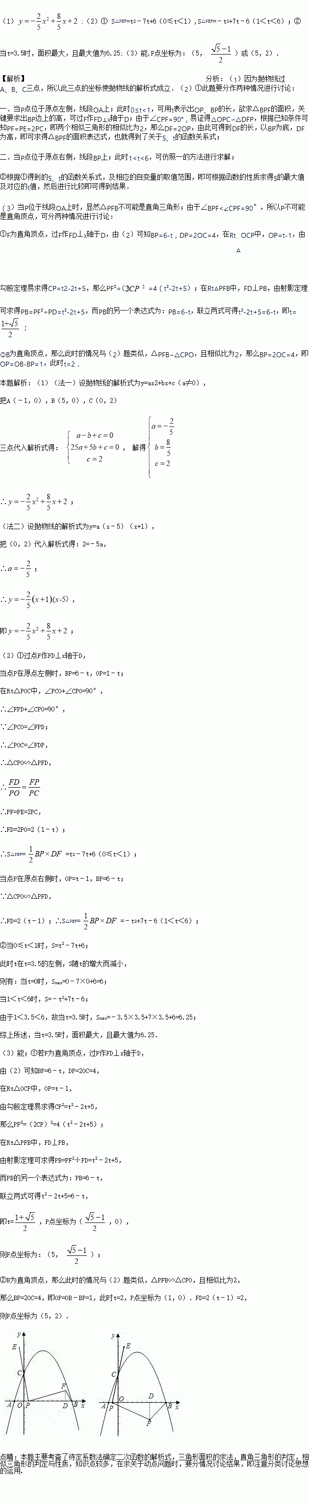 ②当t是多少时,△PBF的面积最大,最大面积是多少?