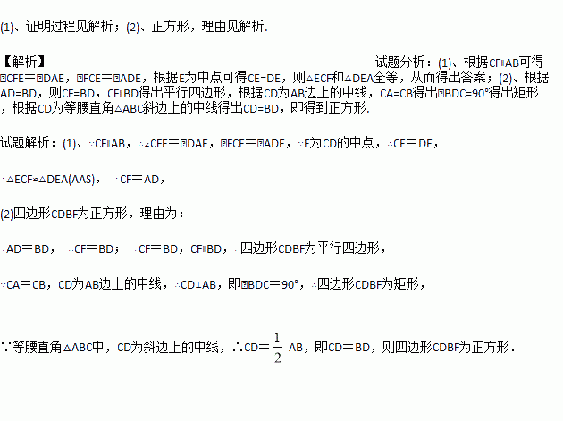 (2) 若CA=CB,∠ACB=90°,试判断四边形CDBF的形状,并说明理由.