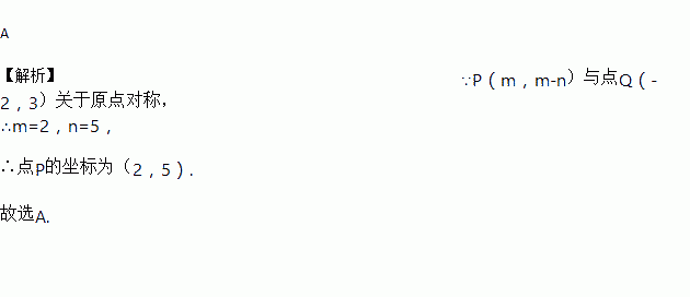 在平面直角坐标系中,若点P(m,m﹣n)与点Q(﹣2,3)关于原点对称,则点M(m,n)在( )