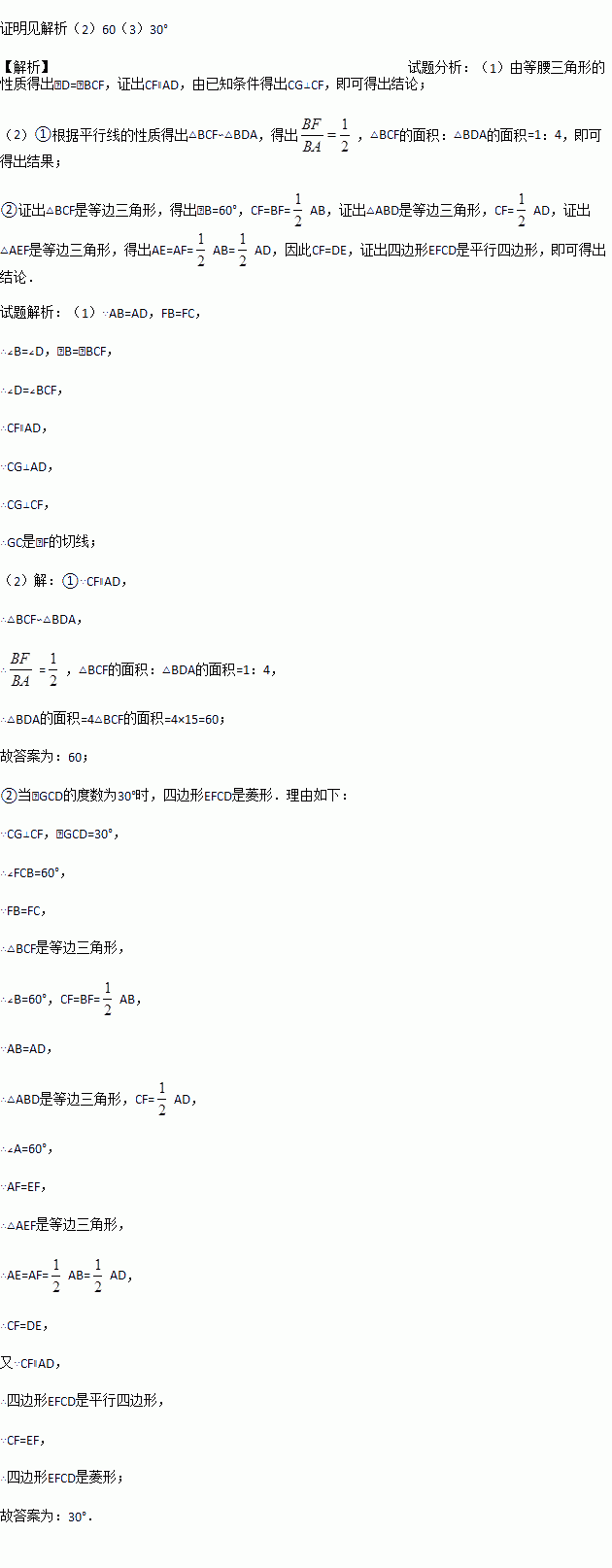 ②当∠GCD的度数为 时,四边形EFCD是菱形.