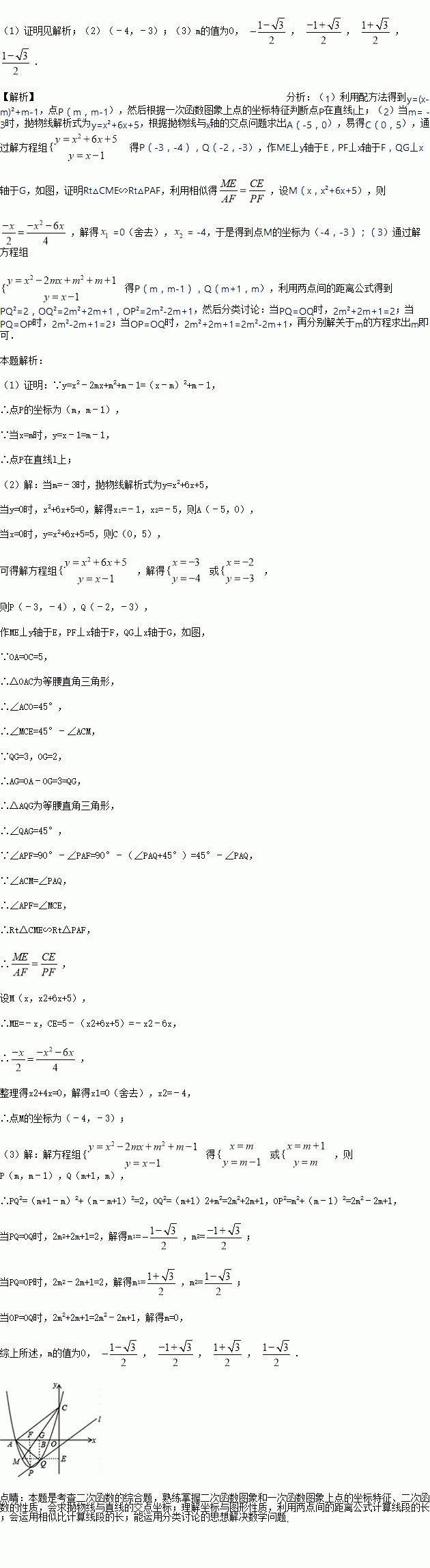 的另一个交点为Q,M是x轴下方抛物线上的一点,∠ACM=∠PAQ(如图),求点M的坐标;
