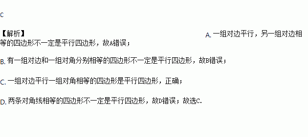 C. 一组对边平行一组对角相等的四边形是平行四边形