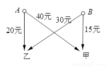 我县黄泛区农场有A、B两个果园,分别收获水果380件,320件,现需把这些水果全部运往甲、乙两个销售点,每件运费如图所示。现甲销售点需水果400件,乙销售点需水果300件.