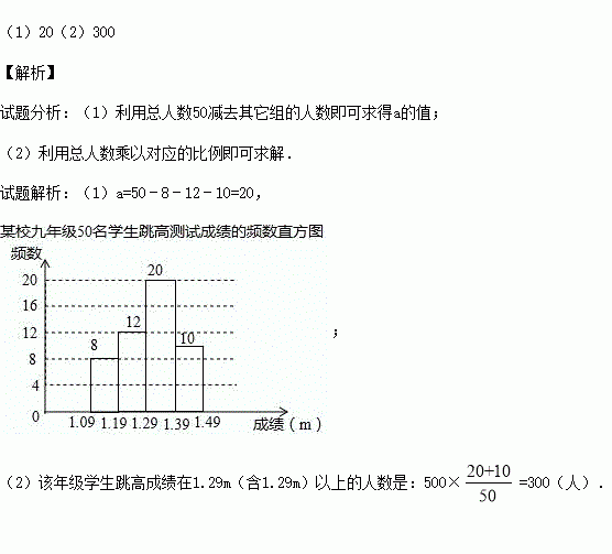 (2)该年级共有500名学生,估计该年级学生跳高成绩在1.29m(含1.29m)以上的人数.