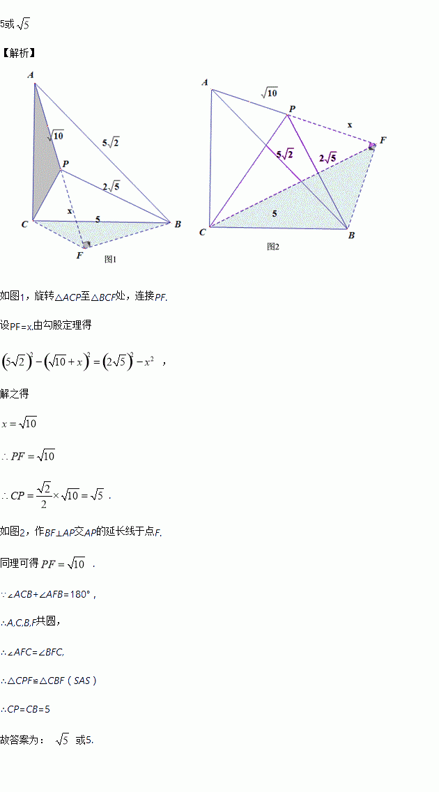 如图,△ABC中,∠ACB=90,BC=6cm,AC=8cm ,动点P从△ABC的顶点A出发,以2cm/s的速度向B点运动,连接CP,设点P的运动时间为t(单位:s),则当t的时间为__________时,△BCP为等腰三角形。