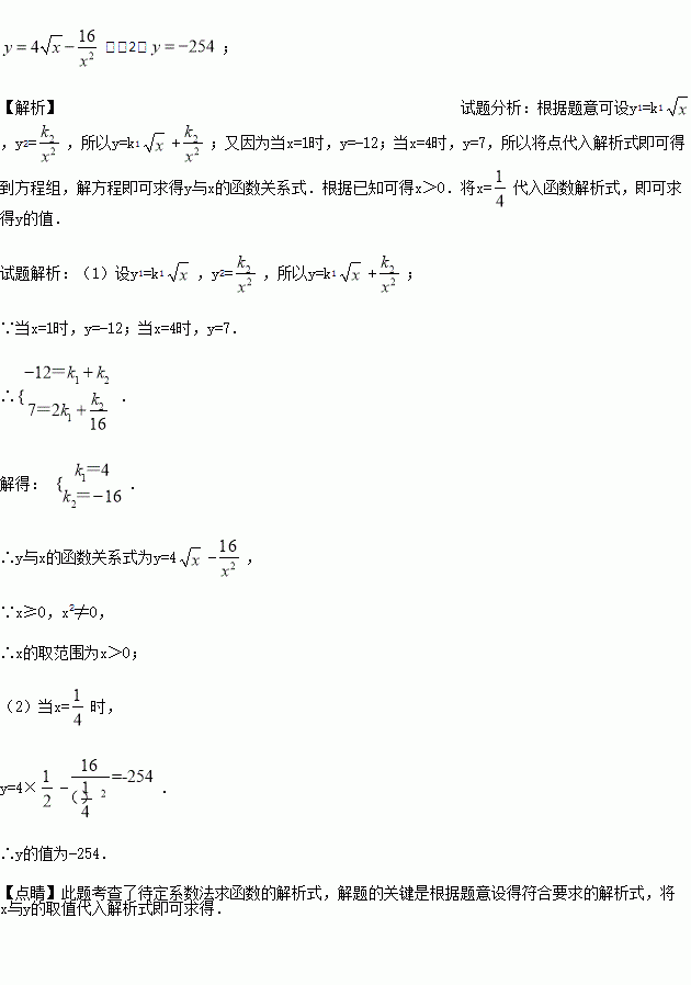 成正比例,y2与x2成反比例.当x=1时,y=-12;
