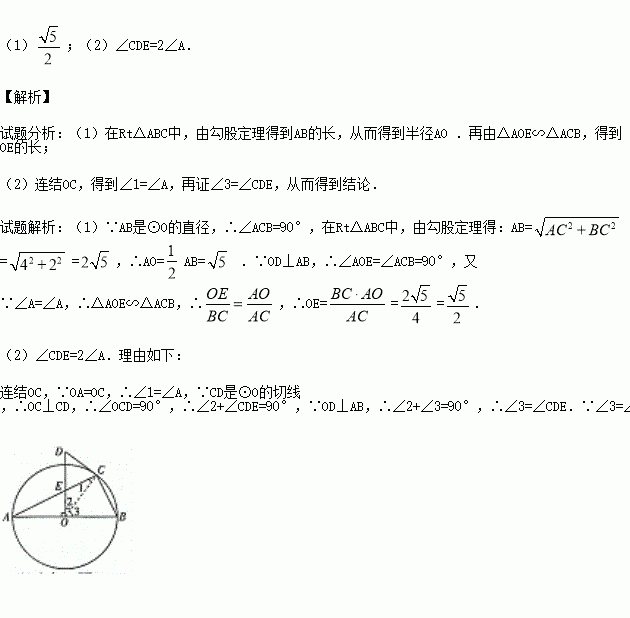 如图,△ABC内接于⊙O,且AB为⊙O的直径,OD⊥AB,与AC交于点E,与过点C的⊙O的切线交于点D.