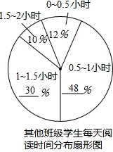 £¨4£©ÀûÓÃÉÈÐÎͳ¼ÆÍ¼µÃ³ö¸ÃÄê¼¶ÆäËû°à¼¶Ã¿ÌìÔĶÁʱ¼ä²»ÉÙÓÚ1СʱµÄÈËÊýÔÙ¼ÓÉϰˣ¨1£©°àÏàÓ¦ÈËÊý¿ÉµÃ´ð°¸£®