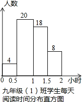 ·ÖÎö £¨1£©Óɰˣ¨1£©°àÿÌìÔĶÁʱ¼äÔÚ0.5СʱÒÔÄÚµÄ4ÃûѧÉúռȫ°àÈËÊýµÄ8%£¬¿ÉµÃ¸Ã°à×ÜÈËÊý£»