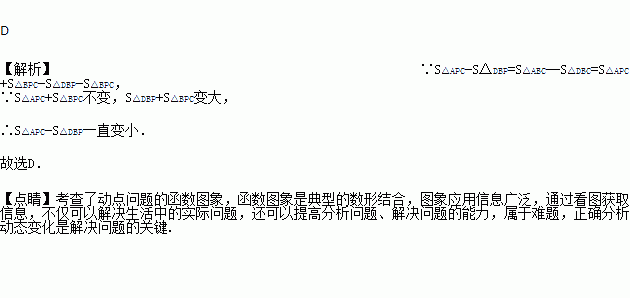 如图,P是给定△ABC边AB上一动点,D是CP的延长线上一点,且2DP=PC,连结DB,动点P从点B出发,沿BA方向匀速运动到终点A,则△APC与△DBP面积的差的变化情况是( )