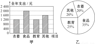 (2015•路北区一模)如图所示是甲、乙两户居民家庭全年各项支出的统计图.