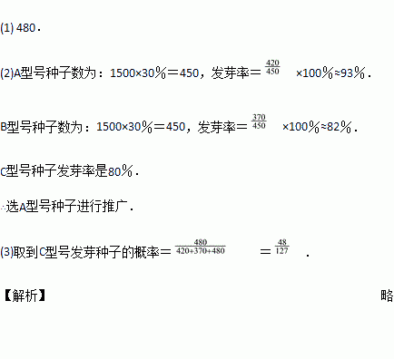 (3)如果将所有已发芽的种子放到一起,从中随机取出一粒,求取到C型号发芽种子的概率.