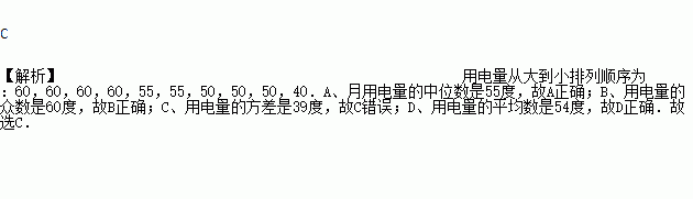 那么关于这10户居民月用电量(单位:度),下列说法错误的是( )