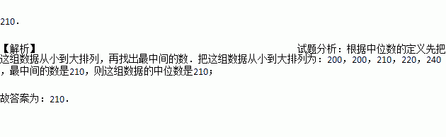 某中学生物兴趣小组调查了本地区几棵古树的生长年代,记录数据如下(单位:年):200,240,220,200,210.这组数据的中位数是__.