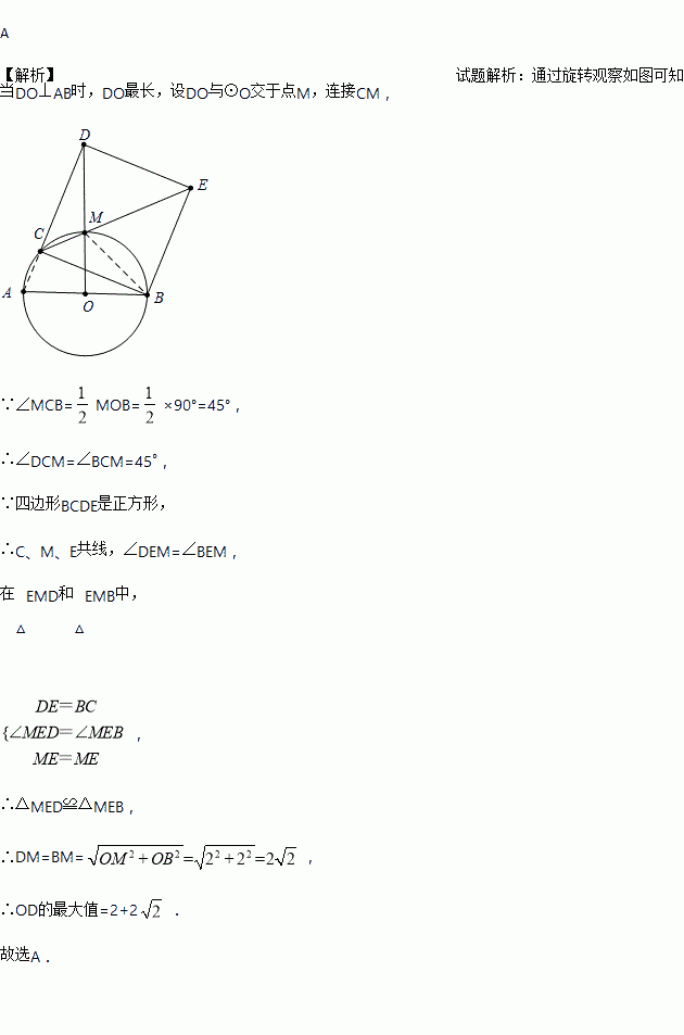 ,点C为半圆AB上动点,以BC为边在⊙O外作正方形BCDE,(点D在直线AB的上方)连接OD,当点C运动时,则线段OD的长( )
