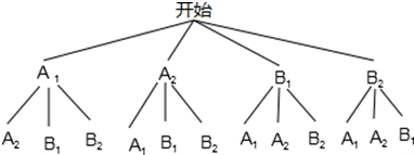 (2)由(1)得只有2名肥胖儿童的班级有2个,共4名学生,设A1,A2来自一个班,B1,B2来自一个班,利用树状图展示所有12种等可能的结果数,再找出来自一个班的结果数,然后根据概率公式求解.