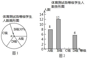 为了解中考体育科目训练情况,某校从九年级学生中随机抽取部分学生进行了一次中考体育科目测试(把测试结果分为A、B、C、D四个等级),并将测试结果绘制成了如图所示的两幅不完整统计图.根据统计图中提供的信息,结论错误的是( )