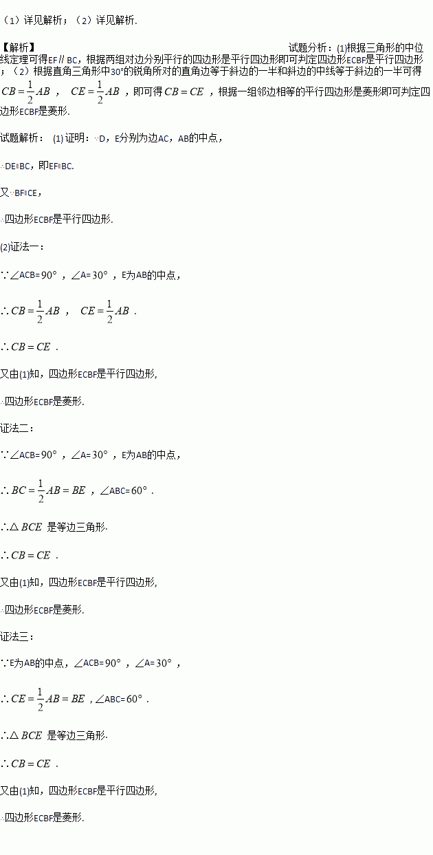 ,D,E分别为AC,AB的中点,BF∥CE交DE的延长线于点F.