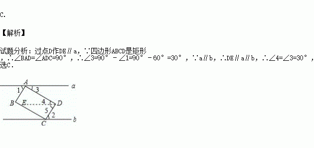 如图,矩形ABCD的顶点A、C分别在直线a、b上,且a∥b,∠1=60°,则∠2的度数为( )