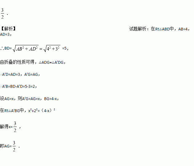 如图,在矩形纸片ABCD中,AB=4,AD=3,折叠纸片使DA与对角线DB重合,点A落在点A′处,折痕为DE,则A′E的长是_________.