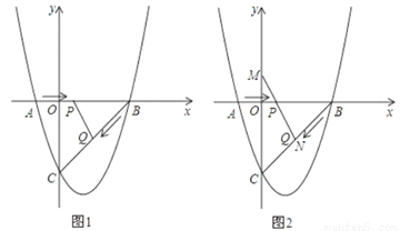 如图,二次函数y=x2+bx+c的图象交x轴于A(﹣1,0)、B(3,0)两点,交y轴于点C,连接BC,动点P以每秒1个单位长度的速度从A向B运动,动点Q以每秒