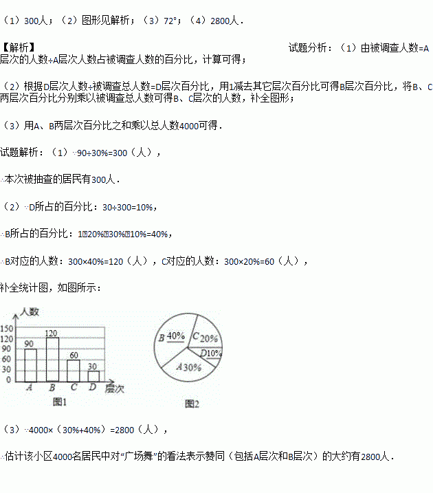 (4)估计该小区4000名居民中对“广场舞”的看法表示赞同(包括A层次和B层次)的大约有多少人.