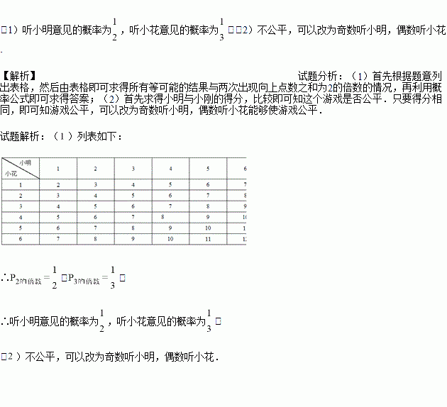 暑假期间,小明和小花准备出去游玩,小明想去重庆,小花想去云南,由于意见不一,通过掷骰子游戏来决定去向,规则如下:两人各掷一次骰子,两次出现的点数和为