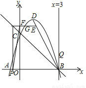 (3)在点E运动的同时,另一个动点Q从点B出发沿直线x=3向上运动,点E的速度为每秒