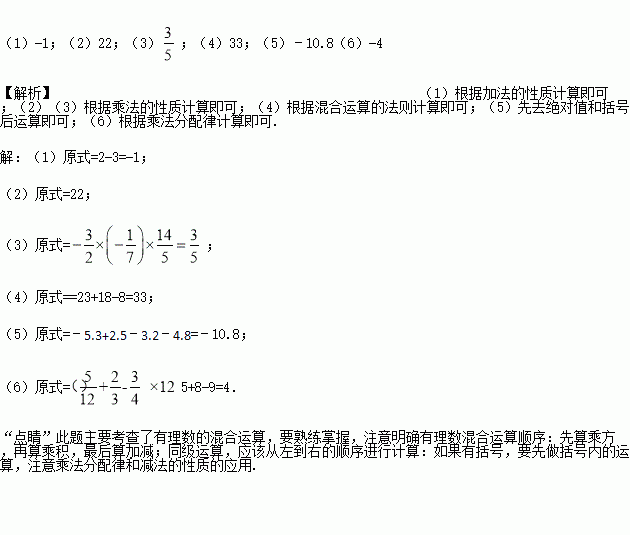 (5) (﹣5.3)+|﹣2.5|+(﹣3.2)﹣(+4.8); (6) ![]()