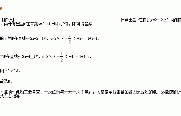 ,a)在直线y=2x+2与直线y=2x+4之间,则a的取值范围是( )