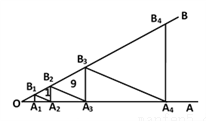 如图,点A1,A2在射线OA上,B1在射线OB上,依次作A2B2∥A1B1,A3B2∥A2B1,A3B3∥A2B2,A4B3∥A3B2,…. 若