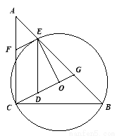 (本题10分)如图,在△ABC中,AC=BC,∠ACB=90°,⊙O(圆心O在△ABC内部)经过B、C两点,交AB于点E,过点E作⊙O的切线交AC于点F.延长CO交AB于点G,作ED∥AC交CG于点D