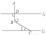 如图,直线l1∥l2,AB⊥l1,垂足为D,BC与直线l2相交于点C,若∠1=35°,则∠2=_____.