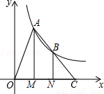 (k>0,x>0)的图象上,过点A、B作x轴的垂线,垂足分别为M,N,延长线段AB交x轴于点C,若OM=MN=NC,S△BNC=2,则k的值为( )