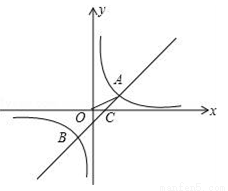 的图象相交于A(2,1),B(n,﹣2)两点,与x轴交于点C.