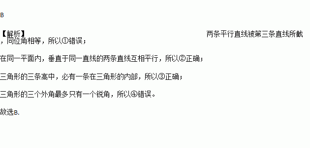 ②在同一平面内,垂直于同一直线的两条直线互相平行