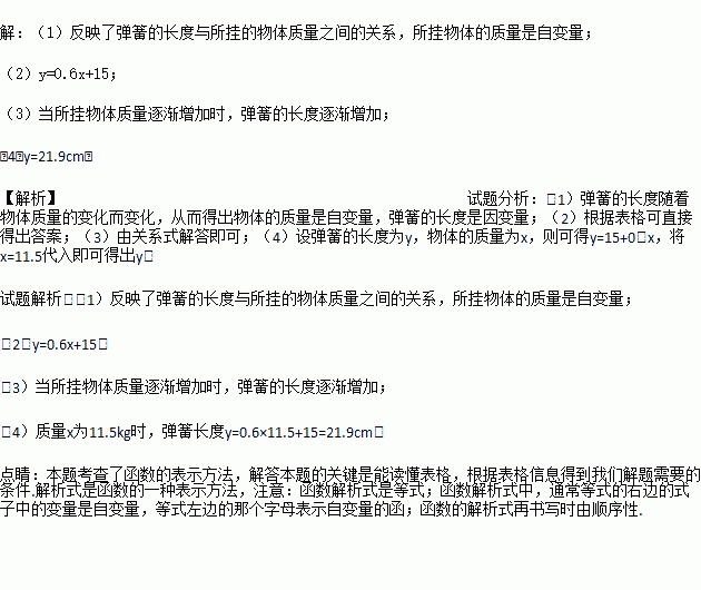 (4)当所挂物体的质量为11.5kg时,求弹簧的长度。
