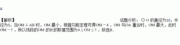 A. 3≤OM≤5 B. 4≤OM≤5 C. 3<OM<5 D. 4<OM<5