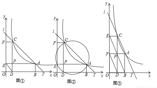 (x>0)的图象相交于A、C两点,与x轴相交于T点,过A、C两点作x轴的垂线,垂足分别为B、D,过A、C两点作y轴的垂线,垂足分别为E、F;直线AE与CD相交于点P,连接DE,设A、C两点的坐标分别为(a,