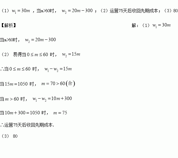 (2)求一辆新投放市场的单车恰好收回先期成本需要运营多少天?