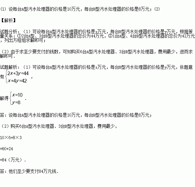 ÒÑÖªÉ̼ÒÊÛ³öµÄ2̨AÐÍ¡¢3̨BÐÍÎÛË®´¦ÀíÆ÷µÄ×ܼÛΪ44ÍòÔª£¬ÊÛ³öµÄ1̨AÐÍ¡¢4̨BÐÍÎÛË®´¦ÀíÆ÷µÄ×ܼÛΪ42ÍòÔª£®