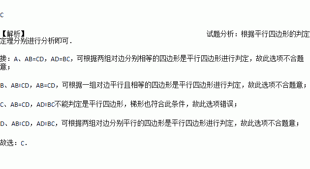 C. AB=CD,AD∥BC D. AB∥CD,AD∥BC