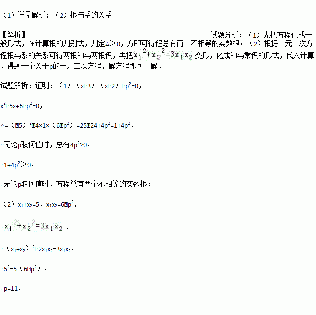已知关于x的方程(x-3)(x-2)-p2=0.