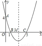 如图,在直角坐标系中,抛物线经过点A(0,4),B(1,0),C(5,0),其对称轴与x轴相交于点M.