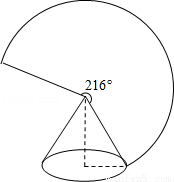 如图,圆锥底面半径为rcm,母线长为10cm,其侧面展开图是圆心角为216°的扇形,则r的值为( )